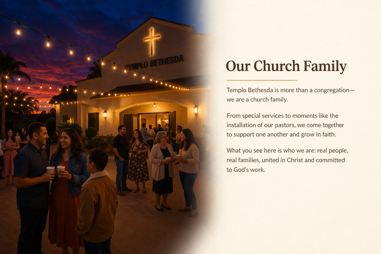 Step into the heart of Templo Bethesda where every moment is a celebration of faith, family, and community. Discover our special services, inspiring gatherings, and look ahead to future events designed to uplift and connect us all. Explore our gallery to witness the warmth, grace, and powerful presence of the Holy Spirit in every frame.